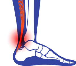 This is an inflammation or irritation of the Achilles tendon, which can cause pain and swell in the back of the ankle. It is often the result of overuse or wearing shoes that do not provide enough support. Treatment may include rest, ice packs, stretching and strengthening exercises, physical therapy, orthotic inserts, NSAIDs, and corticosteroid injections.