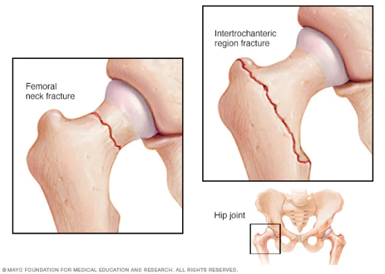 Most hip fractures occur in one of two locations — at the femoral neck or in the intertrochanteric region. The location of the fracture helps determine the best treatment options.